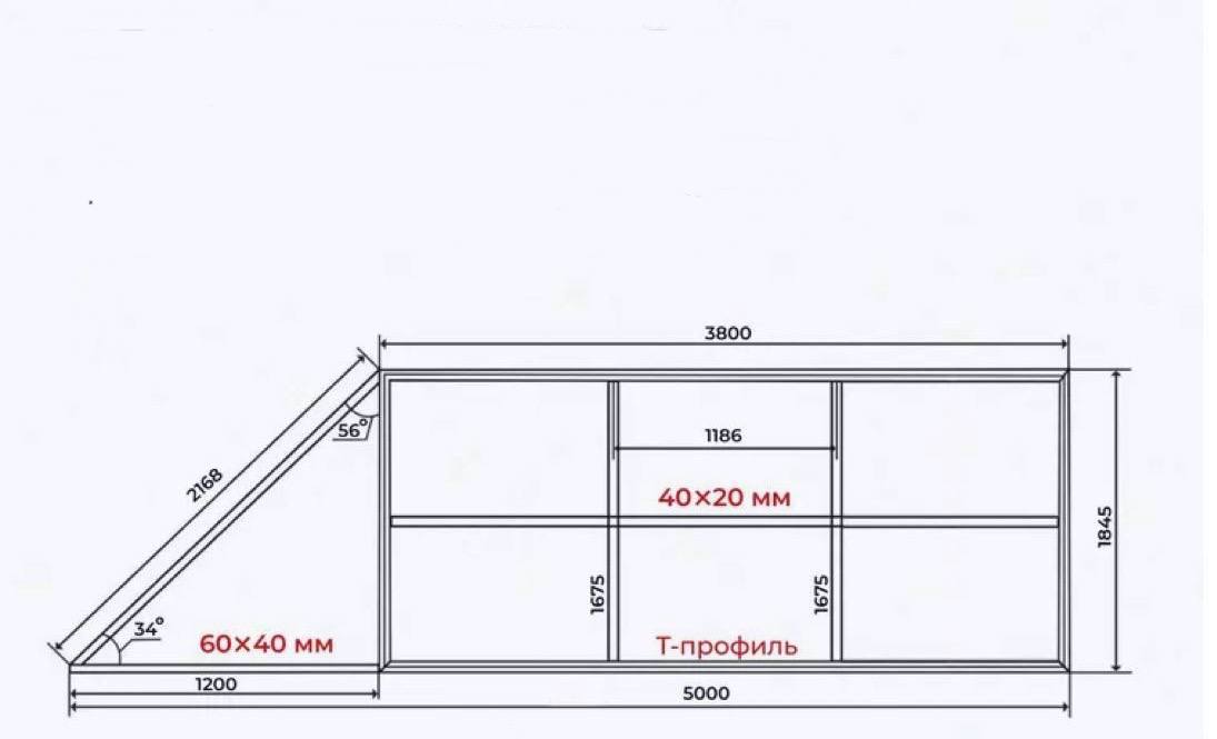 - Горизонтальный Т-профиль 3800 мм - 2 шт;